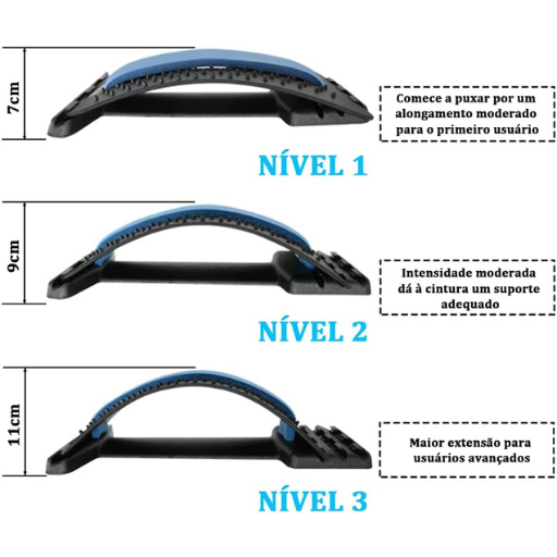 Basta posicionar a trava na altura desejada entre 1, 2 ou 3. Depois deite-se de forma confortável sobre o aparelho, relaxe e sinta a sensação do alongamento e relaxamento. Tudo isso sem precisar sair de casa ou pagar sessões de massagem!
