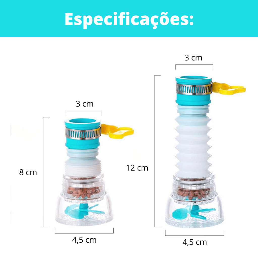 Seu Bico Extensor para Torneira com Filtro é fácil de instalar, já que não é necessário nem um tipo de cola, ferramenta ou fita de vedação, pois seu sistema de silicone universal se acopla a qualquer modelo redondo de torneira, também acompanha uma presilha para que você use caso seja preciso.