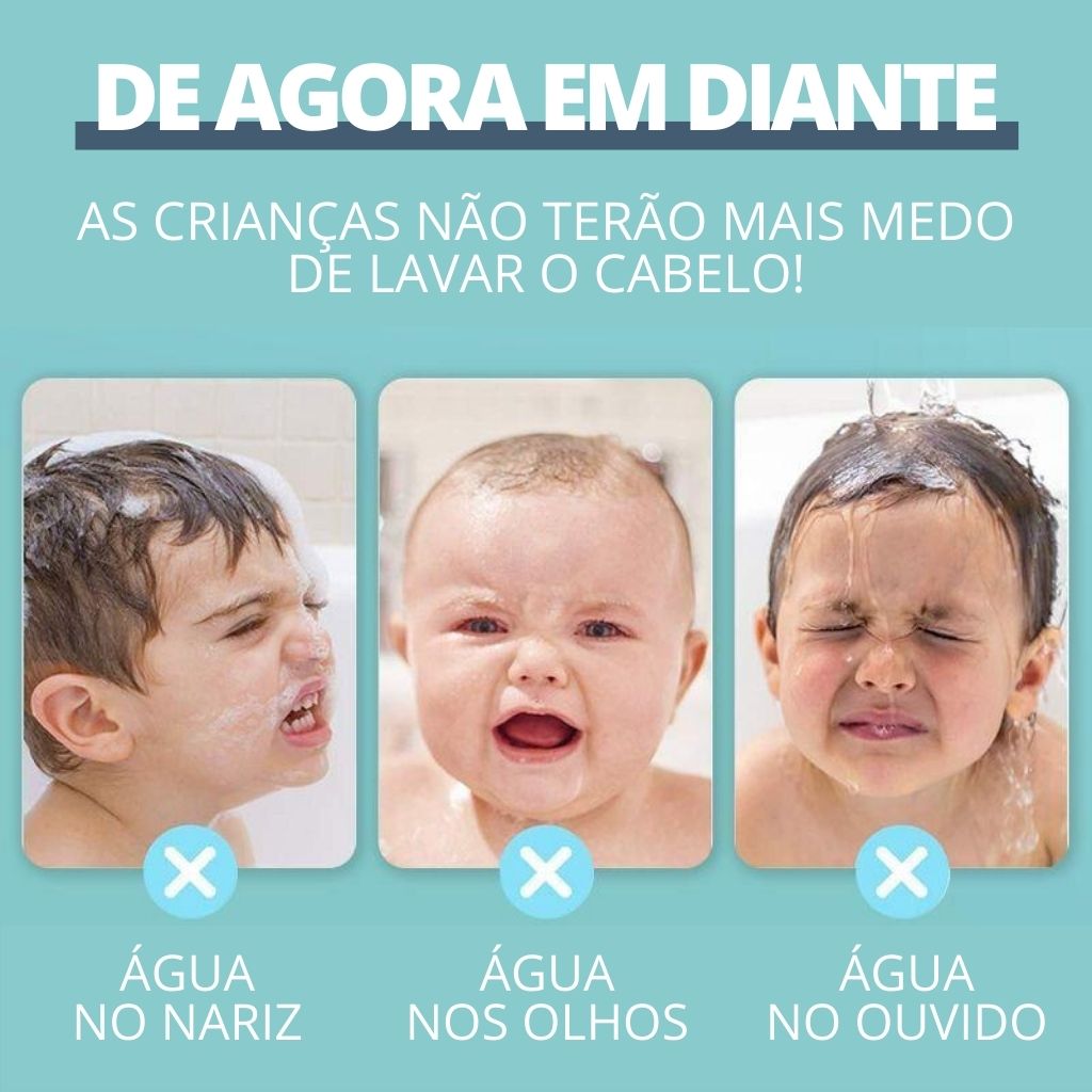 Imagina seu bebê protegido da água do chuveiro na hora do banho, e principalmente, na hora de lavar o cabelo! É tudo o que as mamães querem, não é?