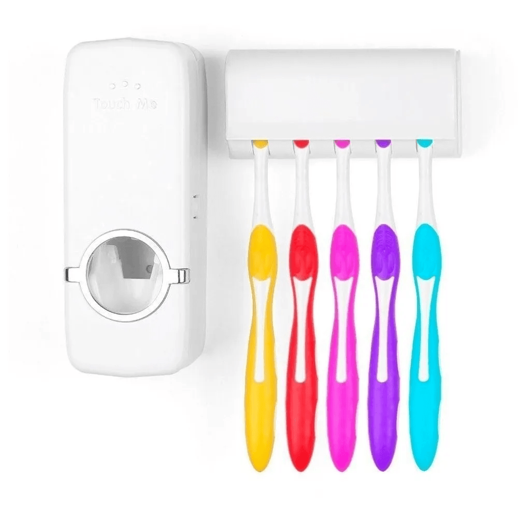 Esse dispenser e suporte de escovas é a opção que faltava no seu banheiro. Não deixe mais a pasta de dentes jogada, aberta, perdida pelo banheiro. Agora ela poderá ficar junto com suas escovas, em um lugar bem fácil de se ver